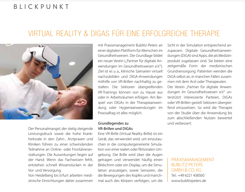 Virtual Reality & DiGAs für eine erfolgreiche Therapie | Fachbeitrag DentalZeitung Ausgabe 01/2023